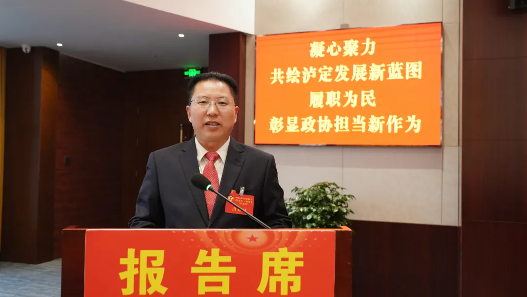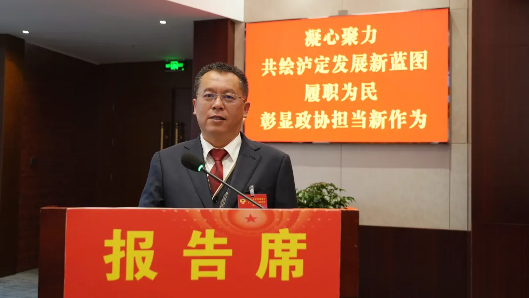 县政协主席姜健康代表政协泸定县第十一届委员会常务委员会向大会作工作报告。