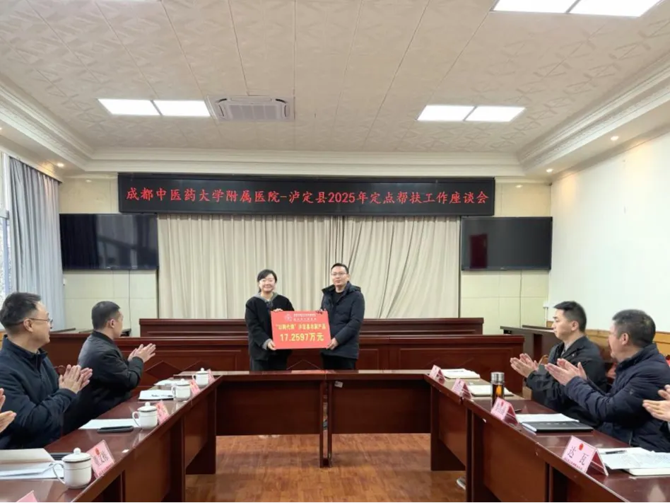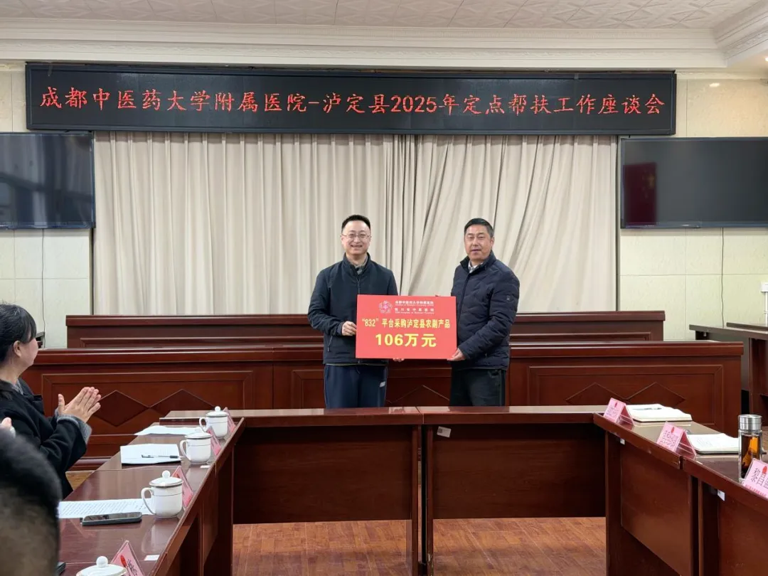 座谈会上,黎昌盛代表县委、县政府和全县人民,向成都中医药大学附属医院长期以来的真情帮扶和大力支持表示衷心感谢。他指出,医院在医疗健康、产业发展、民生改善等方面为我县提供了坚实助力,期望双方进一步深化合作,共同推动乡村振兴工作再上新台阶。郑川对我县给予帮扶工作的支持与肯定表示感谢,强调将继续立足泸定实际需求,充分发挥中医药特色优势,精准助力泸定高质量发展。会议期间,双方还举行了“832”平台采购及“以购代捐”帮扶合作授牌仪式。