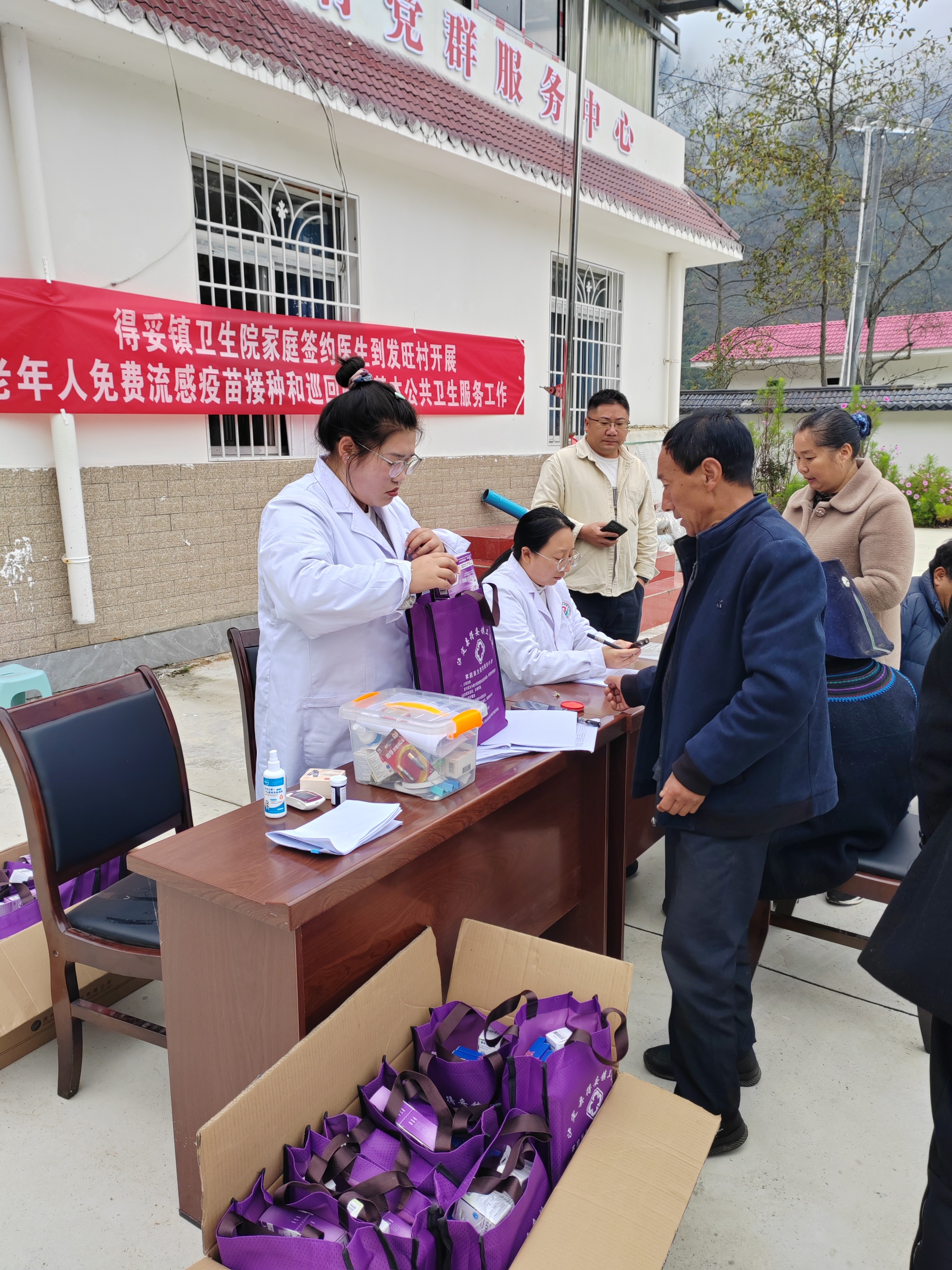 10月24日得妥镇政府,得妥镇卫生院到发旺村组织开展“老年人免费流感疫苗接种和巡回医疗基本公共卫生服务”活动。