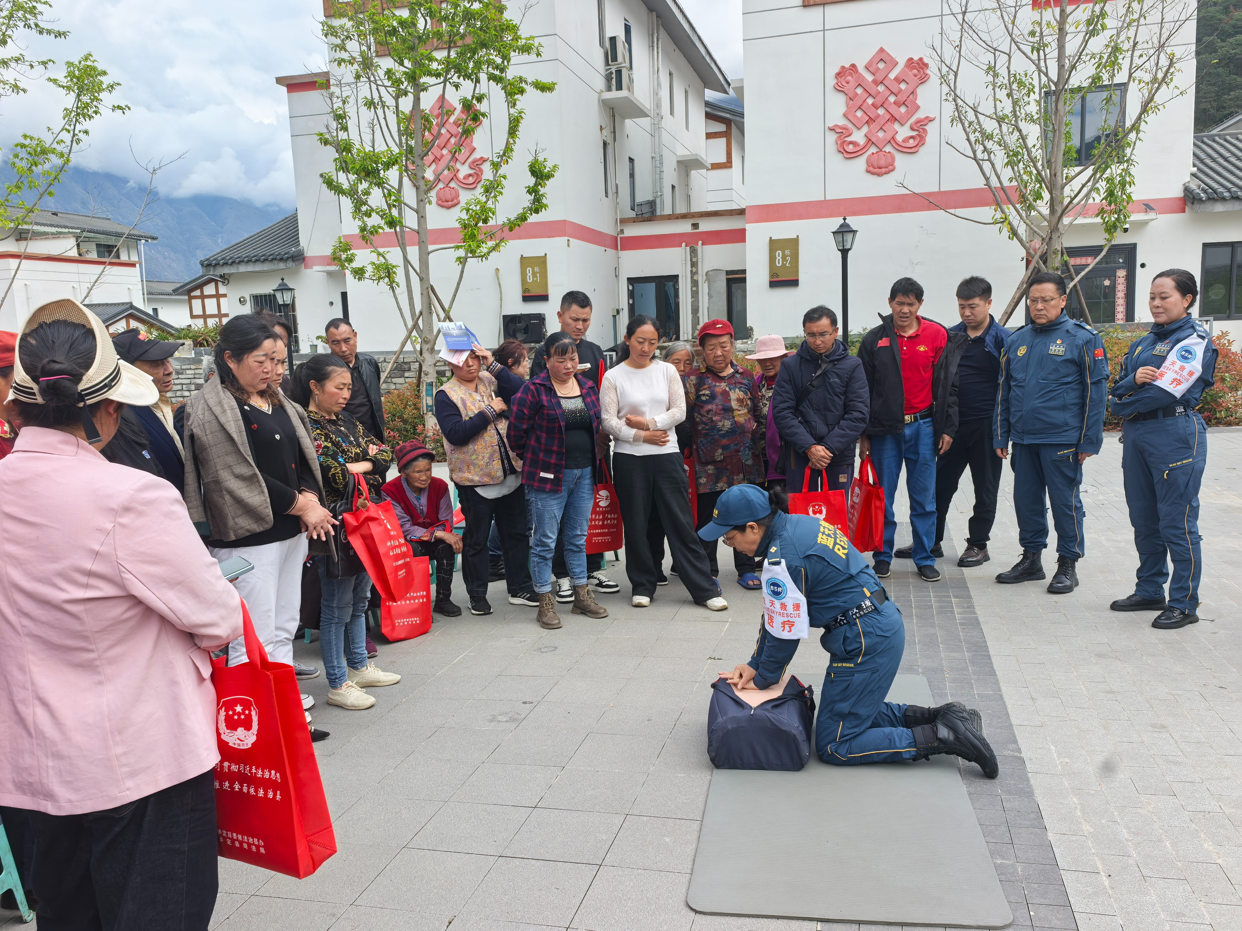 随后,蓝天救援队队员针对农村常见的安全风险,开展应急救援知识专业培训。培训内容涵盖心肺复苏(CPR)操作、海姆立克急救法、火灾逃生技巧、意外伤害应急处理、溺水救援等实用技能,队员们通过理论讲解、现场演示、互动实操相结合的方式,一步步示范急救动作要领,手把手指导村民进行模拟操作,让大家直观掌握基本应急救援技能。同时,队员们还普及了日常安全防范注意事项,提醒群众提高安全防范意识,筑牢家庭和乡村安全防线。